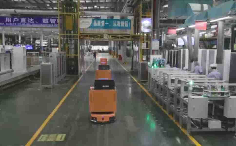 为车载冰箱物流配送打造的智能解决方案,,,包含产中物流通过潜伏举升AMR搬运至线边,,产后成品物流智能仓储,,,流程包含产中物流智能齐套入库,,,线边安灯叫料AMR智能配送至线边,,,,成品入库、、、出库,,,通过无人堆高车机器人,,,,智能仓储管理替代人工作业管理,,,,实现更高存储、、、更高效率、、、更具柔性化的解决方案。。。